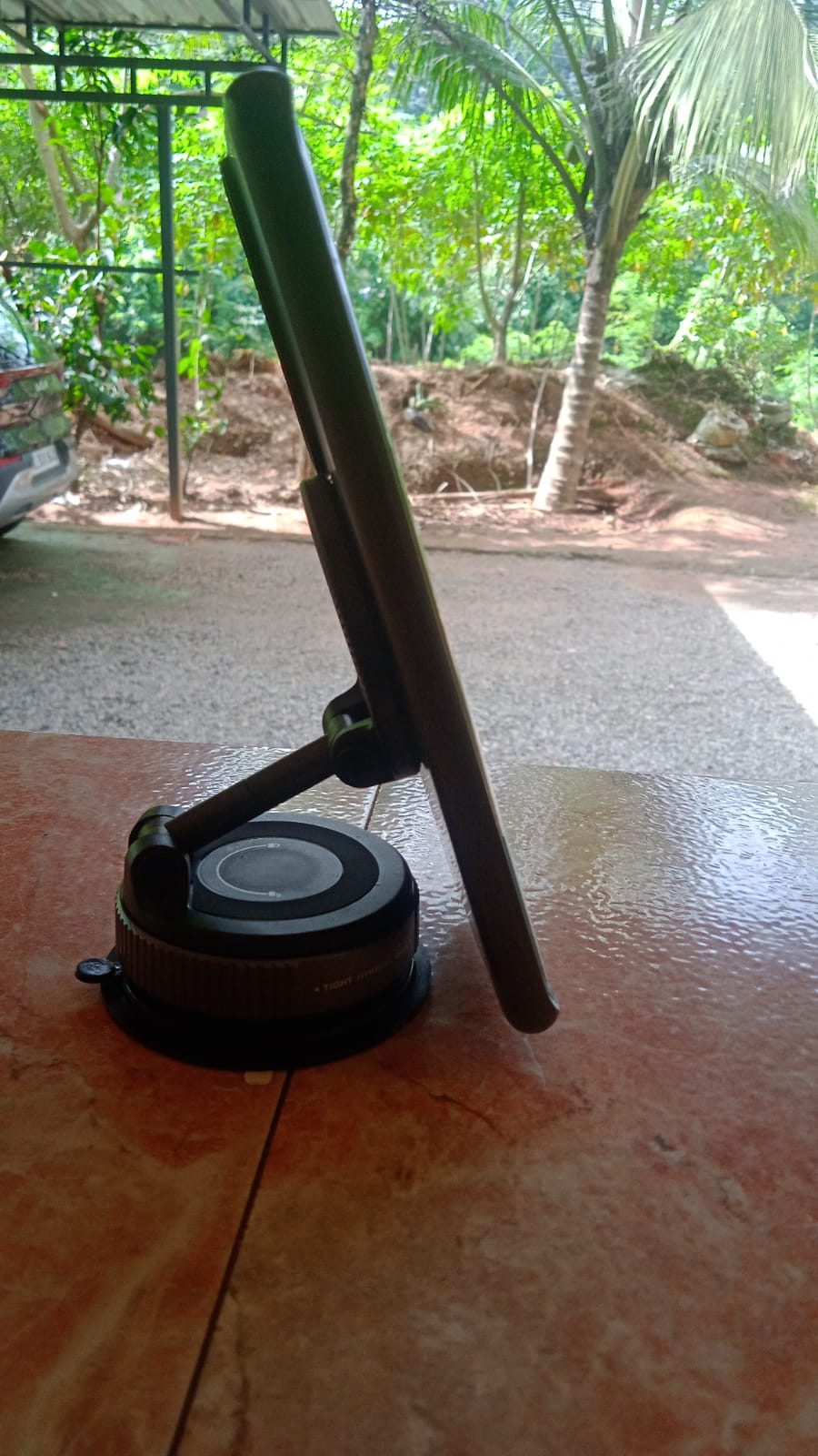 Holds my phone firmly even on bumpy roads. Easy to install and remove. Works well on smooth surfaces but suction may weaken after a few hours.